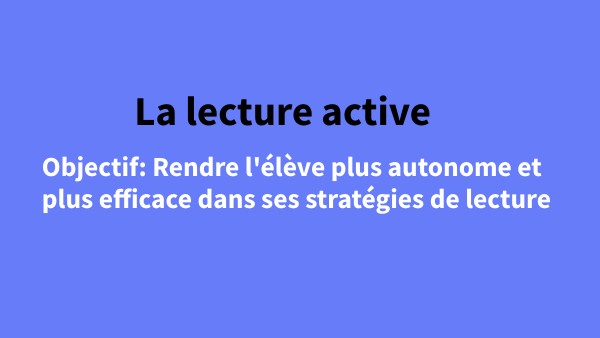 Objectif: Rendre l'élève plus autonome et plus efficace dans ses stratégies de lecture