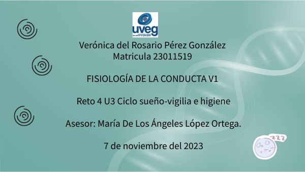 Verónica del Rosario Pérez González Matricula 23011519 FISIOLOGÍA DE LA CONDUCTA V1 Reto 4 U3 Ciclo sueño-vigilia e higiene Asesor: María De Los Ángeles López Ortega. 7 de noviembre del 2023