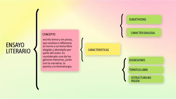 escrito breve y en prosa, que analiza o reflexiona en torno a un tema libre elegido y abordado por parte del autor. Es considerado uno de los géneros literarios, junto con la narrativa, la poesía y la dramaturgia.
