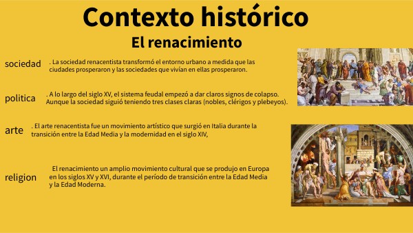 El renacimiento un amplio movimiento cultural que se produjo en Europa en los siglos XV y XVI, durante el período de transición entre la Edad Media y la Edad Moderna.