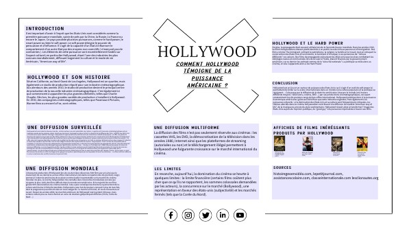 Hollywood est un lieu et un vecteur de puissance des Etats-Unis car il s’agit d’un outil de soft power lui permettant de briller sur la scène internationale dans un monde où la culture populaire et la politique se rejoignent… Cela passe par la diffusion de la doctrine américaine à travers le monde (et à travers différents moyens : télévisions, cinéma, DVD…) par ses productions cinématographiques, occupant constamment les dix premiers rangs du box-office international. Hollywood participe donc à la puissance économique américaine (grâce aux bénéfices que cette industrie engendre) mais également à sa puissance culturelle : si la domination des Etats-Unis et sa culture sont fréquemment critiquées, les thèmes abordés dans le cinéma hollywoodien contribuent à la diffusion du modèle “American way of life”, de la musique ou encore du style vestimentaire. Hollywood réussit alors à transformer l’image des Etats-Unis auprès de l’opinion publique, du “good guy” à la puissance impérialiste à travers ses films.