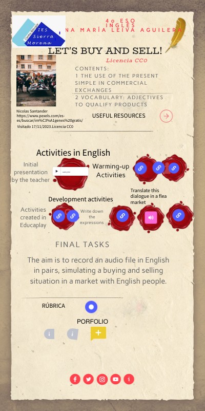 The aim is to record an audio file in English in pairs, simulating a buying and selling situation in a market with English people.