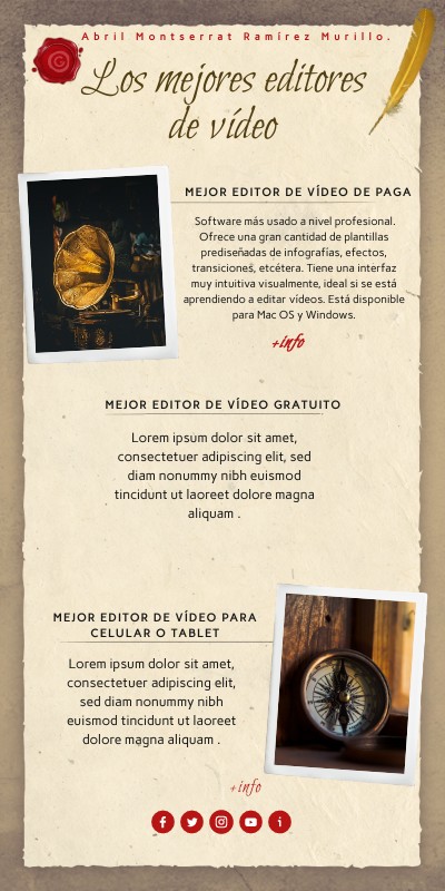 Adobe Premiere Software más usado a nivel profesional. Ofrece una gran cantidad de plantillas prediseñadas de infografías, efectos, transiciones, etcétera. Tiene una interfaz muy intuitiva visualmente, ideal si se está aprendiendo a editar vídeos. Está disponible para Mac OS y Windows.