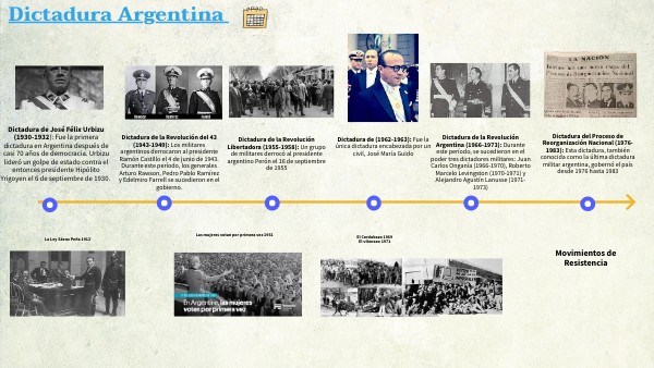 Dictadura de José Félix Urbizu (1930-1932): Fue la primera dictadura en Argentina después de casi 70 años de democracia. Urbizu lideró un golpe de estado contra el entonces presidente Hipólito Yrigoyen el 6 de septiembre de 1930.