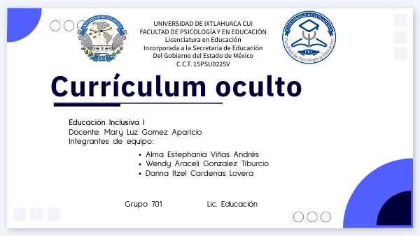 UNIVERSIDAD DE IXTLAHUACA CUI FACULTAD DE PSICOLOGÍA Y EN EDUCACIÓN Licenciatura en Educación Incorporada a la Secretaría de Educación Del Gobierno del Estado de México C.C.T. 15PSU0225V