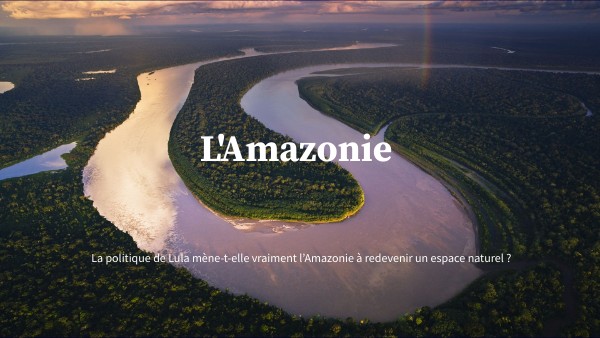I/L'Amazonie: un espace changeant a/Un espace auparavant contraignant b/Domestications de l'Amazonie c/Des ressources exploitables II/Lula et Bolsonaro des politiques opposés a/La politique de Bolsonaro b/La politique de Lula III/ Lula : Une politique parfaite ? a/Soutenabilité faible b/Un rêve ? IIIIB b