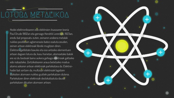 Hodei elektronikoaren edo elektroien itsasoaren teoriaPaul Drude 1902an eta geroago Hendrik Lorenzek, 1923an, eredu bat proposatu zuten, zeinaren arabera metalak nukleo positiboen aglomerazio batez osatuta zeuden, zeinen artean elektroiak libreki mugitzen diren. Elektronegatibitate baxuko eta oso antzeko elementuen artean dagoen lotura da; kasu horietan, atomoetako batek ere ez du besteak baino aukera gehiago elektroiak galtzeko edo irabazteko. Zortzikotearen araua betetzeko modua atomo askoren artean elektroiak partekatzea da. Elektroi-hodei bat sortzen da, multzoari elektroiak lagatzen dizkioten atomoen nukleo guztiek partekatzen dutena. Partekatzen diren elektroiak deslokalizatuta daude partekatzen dituzten atomoen artean.