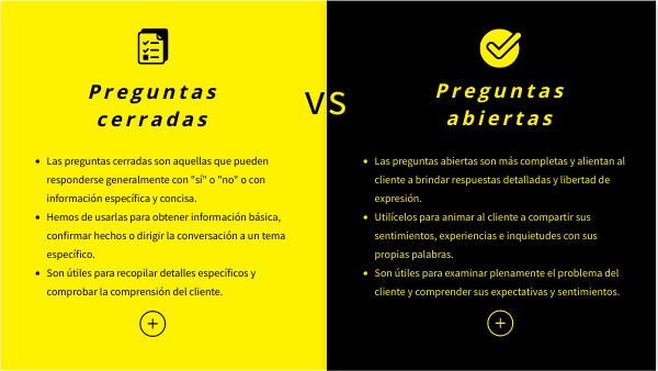 - Son útiles para recopilar detalles específicos y comprobar la comprensión del cliente.