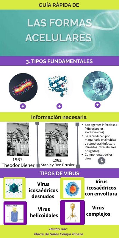 Las formas acelulares (viroides, priones y virus).