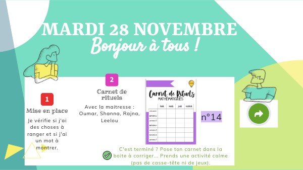 C'est terminé ? Pose ton carnet dans la boite à corriger... Prends une activité calme (pas de casse-tête ni de jeux).