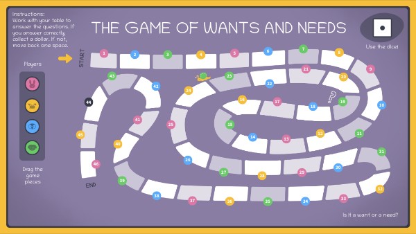 Instructions: Work with your table to answer the questions. If you answer correctly, collect a dollar. If not, move back one space.