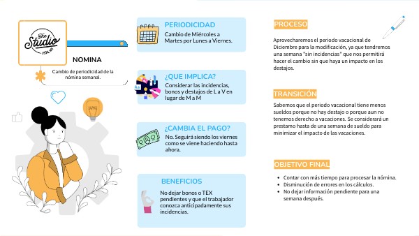 Aprovecharemos el periodo vacacional de Diciembre para la modificación, ya que tendremos una semana "sin incidencias" que nos permitirá hacer el cambio sin que haya un impacto en los destajos.