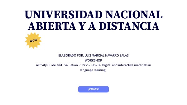 ELABORADO POR: LUIS MARCIAL NAVARRO SALAS WORKSHOP Activity Guide and Evaluation Rubric – Task 3 - Digital and interactive materials in language learning.