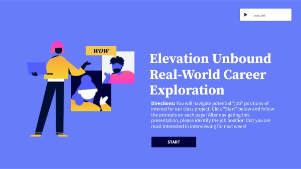 Directions: You will navigate potential "job" positions of interest for our class project! Click "Start" below and follow the prompts on each page! After navigating this presentation, please identify the job position that you are most interested in interviewing for next week!