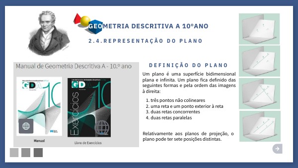 Um plano é uma superfície bidimensional plana e infinita. Um plano fica definido das seguintes formas e pela ordem das imagens à direita: