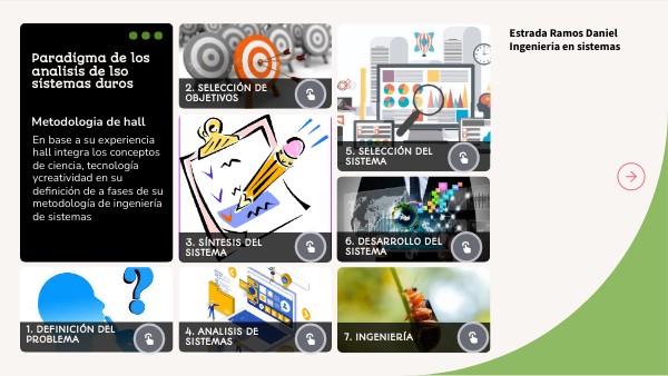 En base a su experiencia hall integra los conceptos de ciencia, tecnología ycreatividad en su definición de a fases de su metodología de ingeniería de sistemas