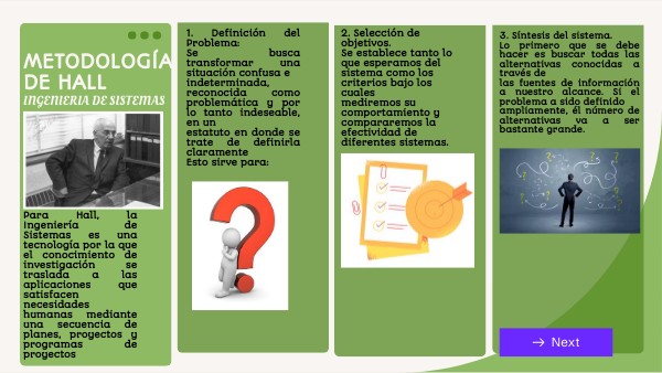 Para Hall, la Ingeniería de Sistemas es una tecnología por la que el conocimiento de investigación se traslada a las aplicaciones que satisfacen necesidades humanas mediante una secuencia de planes, proyectos y programas de proyectos