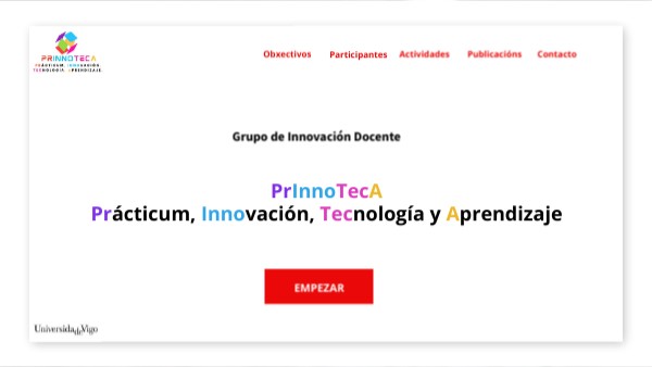 O Grupo de Innovación Docente (GID) PrInnoTecA créase no ano 2024 respostando á convocatoria da Área de Formación e Innovación Educativa da Universidade de Vigo. É unha continuidade do GID Innova_UVigo e está composto por doce docentes vinculados á Facultade de Educación e Traballo Social do Campus de Ourense e a Facultade de Ciencias da Educación e do Deporte do Campus de Pontevedra. Conta ademáis con persoal colaborador doutras universidades españolas.