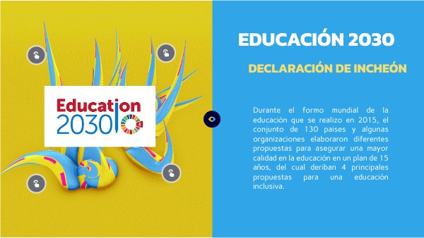 Durante el formo mundial de la educación que se realizo en 2015, el conjunto de 130 paises y algunas organizaciones elaboraron diferentes propuestas para asegurar una mayor calidad en la educación en un plan de 15 años, del cual deriban 4 principales propuestas para una educación inclusiva.