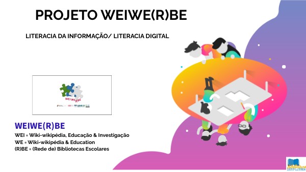 WEI = Wiki-wikipédia, Educação & Investigação WE = Wiki-wikipédia & Education (R)BE = (Rede de) Bibliotecas Escolares