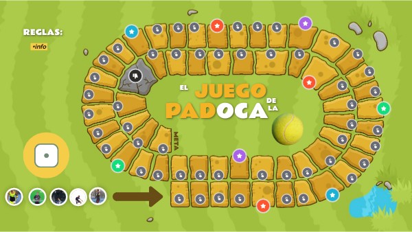 - Cada jugador/a debe elegir una ficha y lanzar el dado (sólo hay que pinchar sobre el dado digital y esperar a que se detenga).
