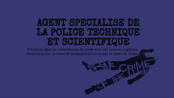 Travaille dans un laboratoire, du crime avec des preuves physique receuillis sur la scene de crime,travaille ou sur la scene de crime.