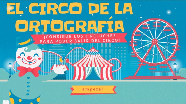 Estáis atrapados en el Circo de la Ortografía, y para poder salir, es necesario pasar por 4 las atracciones que veréis en el mapa. En cada una de ellas, habrá que superar una actividad donde deberéis de demostrar vuestro dominio en la ortografía. Por cada actividad superada, reciberéis un peluche en el que veréis un número. Guardad bien cada uno de ellos porque serán la clave para abrir la puerta de SALIDA. ¿Estáis preparados?