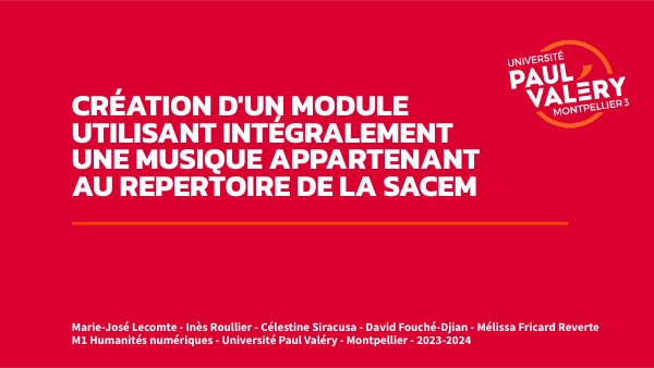 CRÉATION D'UN MODULE UTILISANT INTÉGRALEMENT UNE MUSIQUE APPARTENANT AU REPERTOIRE DE LA SACEM