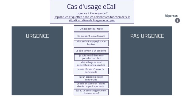 Urgence / Pas urgence ? Déplace les étiquettes dans les colonnes en fonction de si la situation relève de l'urgence, ou pas.