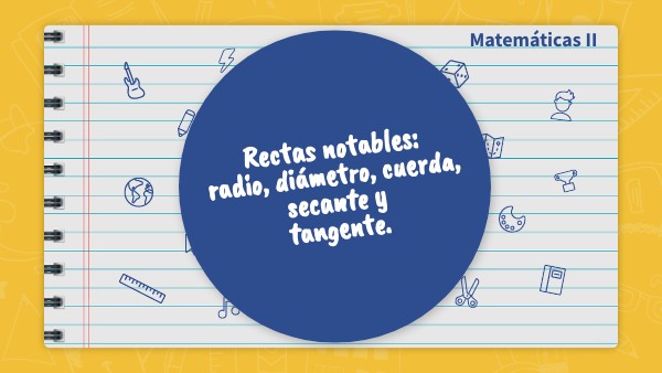 Rectas notables: radio, diámetro, cuerda, secante y tangente.