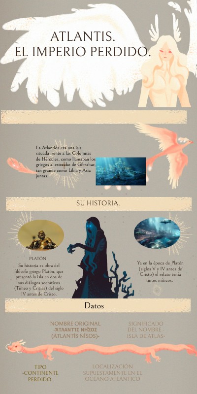 Su historia es obra del filósofo griego Platón, que presentó la isla en dos de sus diálogos socráticos (Timeo y Critias) del siglo IV antes de Cristo.