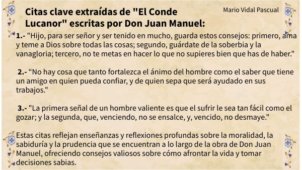 Citas clave extraídas de "El Conde Lucanor" escritas por Don Juan Manuel: