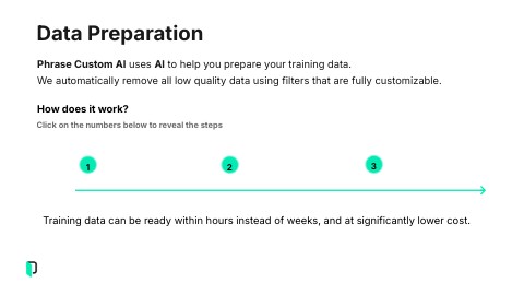 Phrase Custom AI uses AI to help you prepare your training data. We automatically remove all low quality data using filters that are fully customizable.