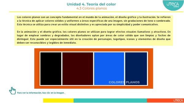 Para ver un ejemplo que complemente lo visto: Teso, D. E. C. A. [@deceroateso3785]. (20 septiembre 2020). 11 Colores planos. [Video]. Youtube. https://www.youtube.com/watch?v=-GOqkCR4YjY