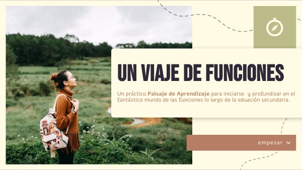 ¿Te gusta viajar? ¡¡Y a quién no!! Te propongo hacer un viaje... un viaje virtual, eso sí; con unas compañeras de mochila realmente misteriosas y fascinantes: las funciones. Prepárate para vivir una experiencia inmersiva e interactiva en la que tú vas a escoger qué hacer y hacia dónde dirigirte en cada momento. Tendrás para elegir 3 puntos de partida diferentes: 3 ciudades desde las que comenzar tu viaje dependiendo de tus conocimientos previos sobre funciones. En el mapa de cada ciudad podrás visitar diferentes puntos turísticos en el orden que prefieras (aunque te recomiendo que sigas el orden propuesto), tras los cuáles se esconden varios retos que deberás superar para continuar. ¿Prepard@?