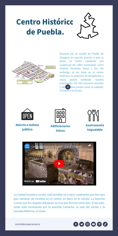 La ciudad trazada a cordel, está dividida en cuatro cuadrantes por dos ejes que cambian de nombre en el centro, es decir en el zócalo. La leyenda cuenta que los ángeles dibujaron la cruz que forman estos ejes. El eje este- oeste está constituido por la avenida Camacho, al este del zócalo y la avenida Reforma, al oeste.