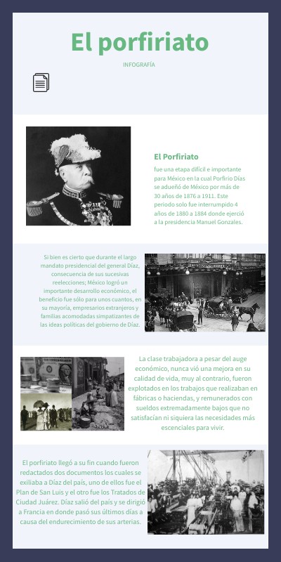 fue una etapa difícil e importante para México en la cual Porfirio Días se adueñó de México por más de 30 años de 1876 a 1911. Este periodo solo fue interrumpido 4 años de 1880 a 1884 donde ejerció a la presidencia Manuel Gonzales.