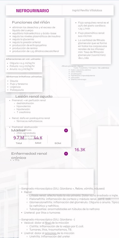 🡣filtrado glomerular: Oliguria↑urea, ↑creatinina, ↑nitrógeno = Sx urémico: