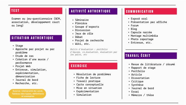 Source : Université de Laval, Tableau des types, définitions et exemples