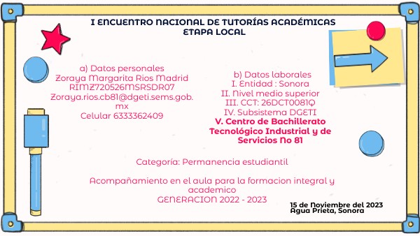 a) Datos personalesZoraya Margarita Rios Madrid RIMZ720526MSRSDR07 Zoraya.rios.cb81@dgeti.sems.gob.mx Celular 6333362409