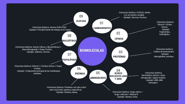 - Estructura Química: Hexosa (C6H12O6). - Ejemplo: Principal fuente de energía en el cuerpo.