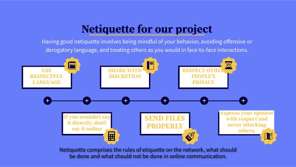 Netiquette comprises the rules of etiquette on the network, what should be done and what should not be done in online communication.