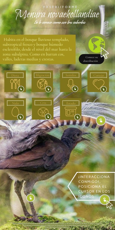 Lill, A. y PFD Boesman (2020).Superb Lyrebird(Menura novaehollandiae), versión 1.0. En Aves del Mundo (J. del Hoyo, A. Elliott, J. Sargatal, DA Christie y E. de Juana, Editores). Laboratorio de Ornitología de Cornell, Ithaca, Nueva York, EE. UU. https://doi.org/10.2173/bow.suplyr1.01