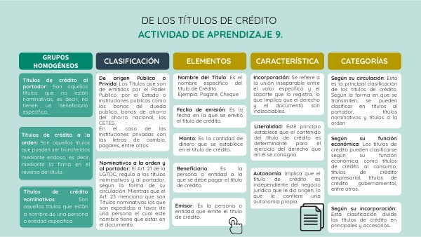 De los títulos de crédito Actividad de aprendizaje 9.