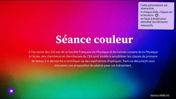 Cette présentation est interactive. À chaque diapositive, cliquez sur le bouton en haut à droite pour identifier les éléments interactifs.