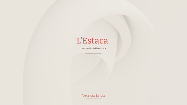 L’ESTACA L’avi siset em parlava De bon mati al portal Mentre el sol esperàvem I els carros vèiem passar. Siset, que no veus l’estaca On estem tots lligats ? Si no podem desfer-nos-en Mai no podem caminar ! Si estirem tots, ella caurà I molt de temps no pot durar, Segur que tomba, tomba, tomba Ben corcada deu ser ja. Si tu l’estires fort per aqui I jo l’estiro fort per allà, Segur que tomba, tomba, tomba I ens podrem aliberar. Però, Siset, fa molt temps ja : Les mans se’m van escorxant, I quan la força se me’n va Ella és més ampla i més gran. Ben cert sé que està podrida Però és que, Siset, pesa tant Que a cops la força m’oblida. Torna’m a dir el teu cant :