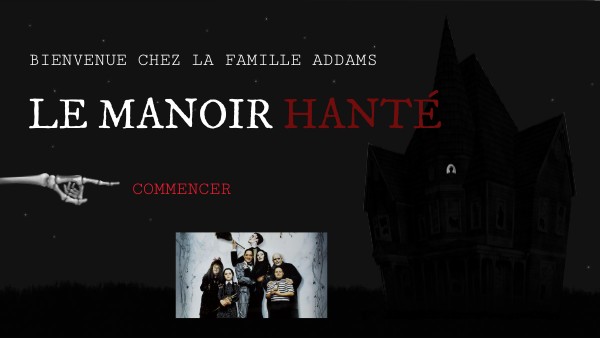 "La famille Addams te kidnappe et t'enferme dans son manoir. Elle te demande de rechercher les souvenirs de ses ancêtres ". Tu dois pour cela, réussir tous les tests et récupérer les objets manquants. Explores le manoir et évites de te faire pièger.