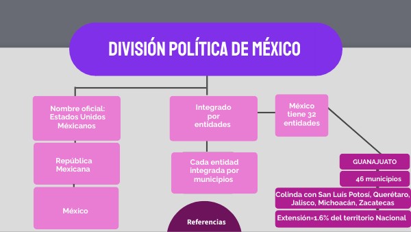 Dirección General de materiales de la Secretaría de Educación Pública. (2022). La división territorial de México. Geografía Cuarto grado. Secretaría de Educación Pública. https://libros.conaliteg.gob.mx/2022/P4GEA.htm?#page/18 Imagen 1: Instituto Nacional de Estadística y Geografía. (2023). División territorial. Cuéntame México. https://cuentame.inegi.org.mx/territorio/division/default.aspx?tema=T Imagen 2: Instituto Nacional de Estadística y Geografía. (2023). Información por entidad, Guanajuato. Cuéntame México. https://cuentame.inegi.org.mx/monografias/informacion/gto/territorio/div_municipal.aspx?t) Instituto Nacional de Estadística y Geografía. (2023). Información por entidad, Guanajuato. Cuéntame México. https://cuentame.inegi.org.mx/monografias/informacion/gto/default.aspx?tema=me&e=11