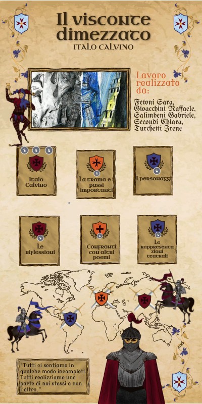 Dopo essere stato dimezzato , il visconte Medardo non si sente piu appartenere completamente a nessuna parte. Non è mai adeguato come intero nè come metà. Questo fa riflettere sull'importanza di trovare la nostra identità e il senso di appartenenza in un mondo che sembra spesso frammentato. Invita a considerare come siamo influenzati dalle nostre connessioni sociali e come queste ci guidino nella nostra strada verso la realizzazione personale