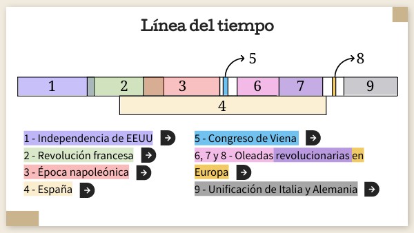 1 - Independencia de EEUU 2 - Revolución francesa 3 - Época napoleónica 4 - España